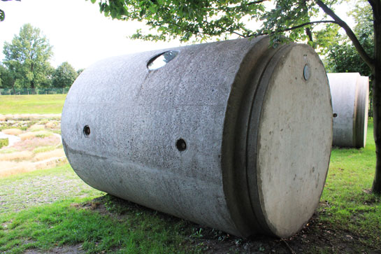 Die fünf Betonröhren mit Blick auf den Landschaftspark