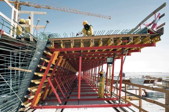 Spannbeton im Brückenbau: Herstellung der 55 m langen Hohlkästen auf der Saadiyat-Brücke in Abu Dhabi (VAE)