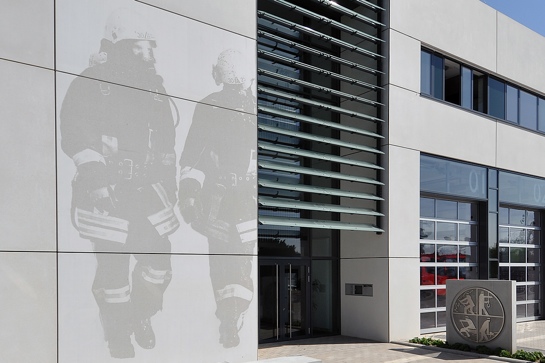 Fotobeton-Motiv auf der Feuerwache in Langenfeld