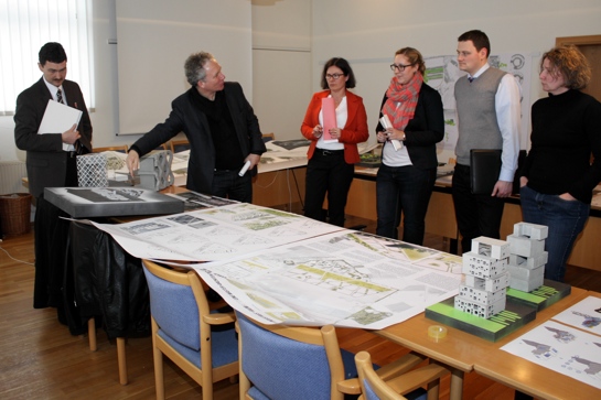 Die Jury-Sitzung folgte gleich im Anschluss. Normalerweise finden solche Besprechungen „hinter verschlossenen Türen“ statt. In Hohentengen konnten die Master-Studenten aus Karlsruhe dabei sein, wie die Jury-Mitglieder die einzelnen Arbeiten diskutierten und bewerteten. Das Feedback zu den eingereichten Arbeiten fiel allerdings sehr positiv aus, die Jury war (Zitat Jury-Protokoll) „begeistert vom Ideenreichtum der Studierenden“.