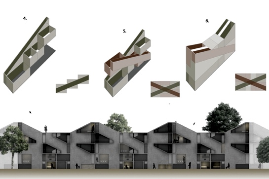 Die Arbeit der beiden Architekturstudenten von der msa – münster school of architecture ist eine Antwort auf den wachsenden Wohnungsbedarf in Ballungsräumen und städtischen Zentren. Der Entwurf beschäftigt sich mit der Frage, wie innerstädtische „Restlagen“ – bisher ungenutzte Standorte – für das Wohnen genutzt werden können.
