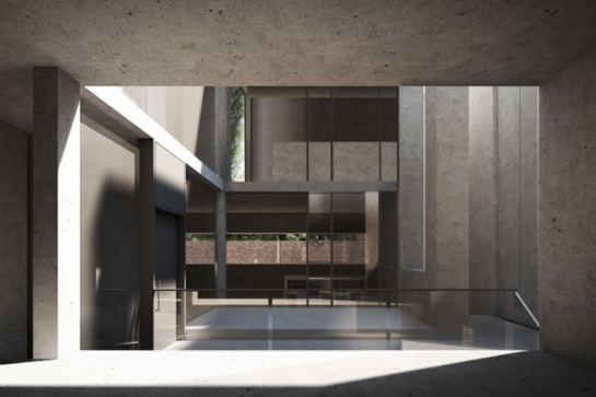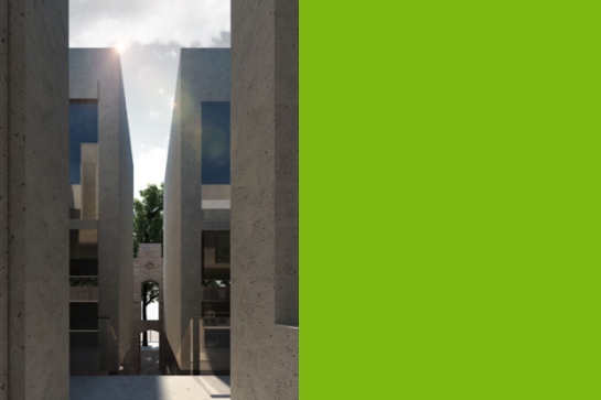 Die eigenständigen Beton-Kuben füllen die Fläche des Altbaubestands nicht vollkommen aus, sondern „halten Abstand“. So entstehen neue Freiräume, miteinander verbunden durch intelligent gelegte Sichtachsen. Die Jury des CDC würdigte diese Architektur in ihrer Begründung folgendermaßen: „Indem der Rhythmus der Bestandsfassaden dem neuen Grundriss zugrunde gelegt wird, ergeben sich auch räumlich bereichernde Bezüge zwischen Alt und Neu – ursprüngliche Innenräume werden zu Außenräumen.“