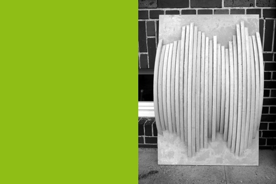 Der Entwurf von Kristina Wagner und Stephanie Dick besteht aus ca. 25 feinen Betonbögen, die mit Hilfe von filigranen Schalungen aus aufgeschnittenen und leicht zusammen gedrückten Papierstreifen gegossen wurden. Nach mehreren Betoniervorgängen wurden die fertigen Bögen mit beiden Endpunkten über eine geschlossene Rückwand verbunden.