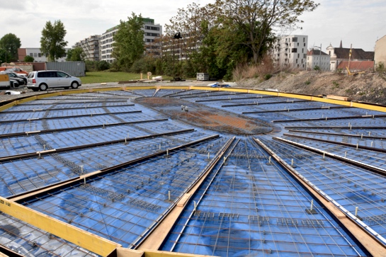 Im ersten Schritt werden also die Einzelteile der geplanten Kuppel hergestellt – flach am Boden liegend. Damit die Teile später (als gekrümmte Kuppel) perfekt aneinander passen, müssen keilförmige Stücke zwischen den Kuppelsegmenten ausgespart werden.