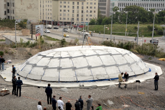 Die fertigen Kuppelsegmente kurz vor dem „Aufblasen“.