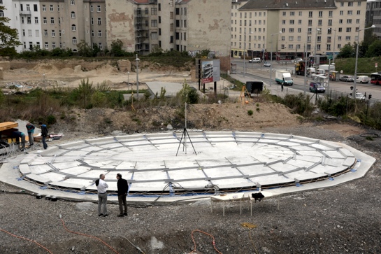 Der Phantasie sind also kaum Grenzen gesetzt. Eine andere Idee der Wiener Planer: Man entfernt eine Hälfte der Betonkuppel und erhält so eine Halbschale für Veranstaltungen (siehe Bild unten).
