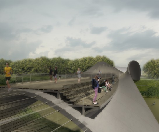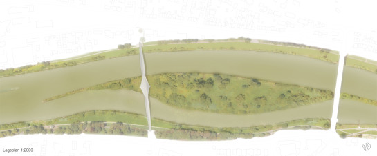 Die Entwurfsverfasser zeigen eine große Sensibilität für die empfindliche Flusslandschaft. Das Bauwerk integriert sich nicht nur, sondern überträgt das Wesen des Ortes in eine neue Wahrnehmungsebene, die Betrachtern und Nutzern den Charakter der Landschaft präsent macht. Dieser Effekt wird erreicht, indem die technischen und gestalterischen Möglichkeiten des Schalentragwerks verstanden, interpretiert und zum Überspannen der beiden Flussarme genutzt werden. Der Einsatz von Schalentragwerken für Brückenbauten ist trotz ihrer gestalterischen Möglichkeiten eher selten, sodass der Entwurf hier auch einen Beitrag dazu leistet, diese Konstruktionsweise wieder ins Bewusstsein zu rücken. Die sehr elegante Form der Brücke, die das Öffnen und Schließen als Reaktion auf die Umgebung thematisiert, überzeugt. Zugleich ist sie statisch sinnvoll gewählt, sodass die Übereinstimmung von Gestalt und Tragverhalten auf einfache, elegante Weise erreicht wird.