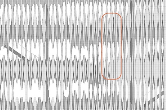 Für die Realisierung als 1:1-Fassadenausschnitt wurde ein Entwurf ausgewählt, der ein besonders abwechslungsreiches Fassadenbild ermöglicht. Das System aus 20 verschiedenen Blöcken kann in vielen Varianten kombiniert werden, so dass eine beinahe „organische“ Fassadenstruktur entsteht.