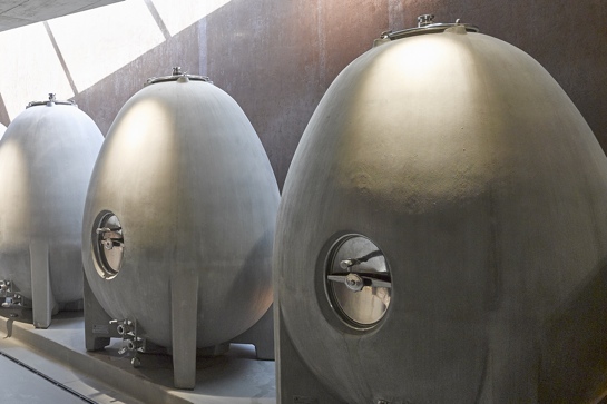 Weinfässer aus Beton sind pflegeleichter und robuster als Holzfässer. Sie können große Mengen Flüssigkeit aufnehmen, sind eiförmig und werden von oben oder von vorne befüllt. Anders als Edelstahltanks sind Beton-Behälter für Wein in geringem Maße porös und ermöglichen so eine Reifung wie in den traditionellen Holzfässern. Denn durch den umgebenden Beton gelangt die optimale Sauerstoffmenge an den Wein. Experten sind sogar davon überzeugt, dass sich „Beton-Eier“ wegen ihrer Form sogar besser für diese sogenannte „Mikrooxidation“ eignen. Damit der saure Wein nicht mit der Zementoberfläche reagiert, werden die „Beton-Eier“ im Innern vor der Befüllung mehrfach mit Weinsteinpaste behandelt.