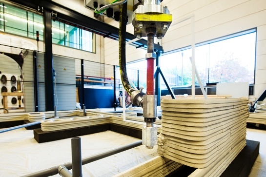 An der Technischen Universität Eindhoven wurde im Oktober 2015 ein 3D-Drucker für Beton in Betrieb genommen. Das Gerät mit den beeindruckenden Maßen von 11 x 5 x 4 Metern soll komplette Betonfertigteile wie Wände inklusive feiner Details „drucken“.
