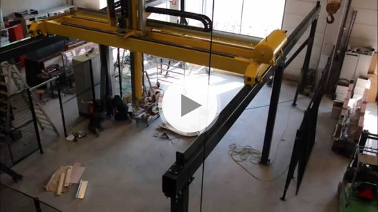 Der gigantische 3D-Drucker erinnert auf den ersten Blick an einen Laufkran, wie man ihn aus Werkstätten oder Industriehallen kennt: Auf zwei Schienen in über vier Metern Höhe läuft eine Art Doppelbalken aus Stahl, an dem sich die Haltevorrichtung für den Druckkopf befindet. Der Druckkopf wird über einen Schlauch mit dem zähflüssigen Beton versorgt und kann auf- und abbewegt werden. So ist dreidimensionales Bauen möglich, jeder Punkt innerhalb des Bauraums kann vom Druckkopf erreicht werden.