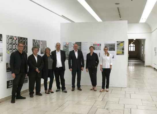 Die diesjährige Jury mit Prof. Johannes Schilling (münster school of architecture), Prof. Eduard Schmutz (Staatliche Akademie der Bildenden Künste Stuttgart), Christiane Bohlmann (HeidelbergCement), Prof. Arndt Goldack (Bergische Universität Wuppertal), Ulrich Nolting (InformationsZentrum Beton), Prof. Oda Pälmke (TU Kaiserlautern) und Ulrike Kunkel (db deutsche bauzeitung). (v.l.n.r.)