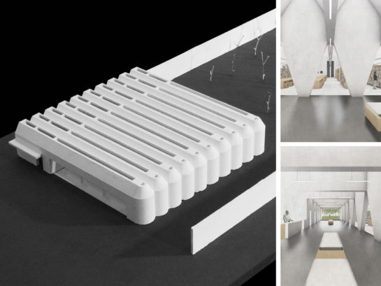 Leon Steffani und Florian Gick von der UdK Berlin überzeugten die Jury mit ihrem schlichten, einprägsamen Entwurf einer 24-Stunden-Bibliothek inmitten eines rauen Berliner Industriegebiets. Als Neuinterpretation des Shed-Dachs erinnert das weit gespannte, skulpturale Hallentragwerk aus vorgefertigten Betonelementen an klassische Industriearchitekturen und schafft gleichzeitig fast museal anmutende Räume.
