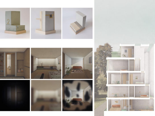 Einen der gleichrangigen Preise erhielt Hanna Albrecht von der TU München für ihren Entwurf eines integrativen Wohnprojekts für blinde und sehbehinderte Menschen. Auf Grundlage von Materialstudien mit Beton gestaltete sie Räume, Oberflächen und Details, die mit dem Tastsinn wahrgenommen werden können und die taktilen Qualitäten des Materials eindrucksvoll hervorheben.