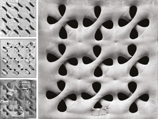 In einem kleineren Maßstab setzten Maja Tokarski und Nadim El Khorazaty von der TU Darmstadt das Wettbewerbsthema „Tactility“ um: Mit „florid concrete“ entwickelten sie eine so einfache wie raffinierte textile Schalung für ein seriell einsetzbares Beton-Fassadenmodul mit komplexer, dreidimensional verflochtener Ornamentik. Die textile Haptik seiner Oberflächen lässt den Beton weich und stofflich, fast wie ein Polster erscheinen.