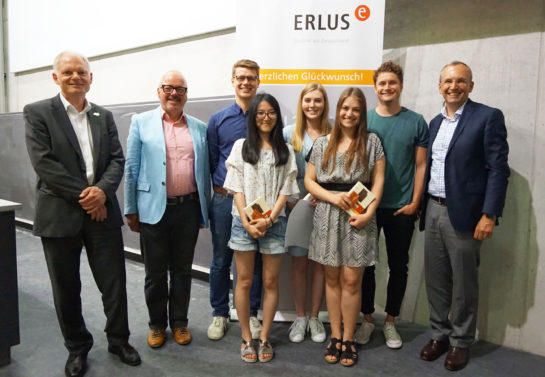 Erlus-Vorstand Peter Hoffmann, Leitung Entwicklung der Erlus AG Dr. Alexander Stoll, die OTH-Studierenden der Fakultät Architektur Paul Kopp, Jieyu Xiong, Melanie Meier, Irina Fritzler und Alexander Thumann sowie Guido Hörer, zuständig für Marketing und Vertrieb bei der Erlus AG. Foto: Sarah Sophie Ruppert