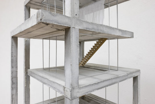 Martin Jost von der Akademie der Bildenden Künste München entwarf ein Wohnhaus, das wie eine begehbare Raumskulptur auf ein filigranes Gefüge aus verspringenden Plattformen und Stützen reduziert ist und auf faszinierende Weise mit dem Anschein der Instabilität spielt. Es gibt der Plastizität des Materials Beton eine abstrakte, minimalistische Ausdrucksform, die an ein fragiles Mobile erinnert. © BetonBild