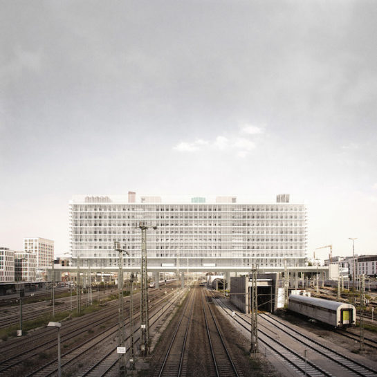 Maximilian Blume von der TU München schlägt als Antwort auf die wachsende Wohnungsnot in Großstädten eine riesige „Wohnmaschine“ für bis zu 1000 Bewohner vor, die als Brückenbauwerk die Bahntrasse nahe dem Münchner Hauptbahnhof überspannt. Als Genossenschaftsmodell organisiert, setzt das Projekt gemeinschaftlich orientierte Wohnformen in einer urbanen architektonischen Großform um und überzeugt durch seinen skulpturalen, kraftvollen Ausdruck. © BetonBild