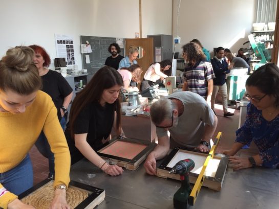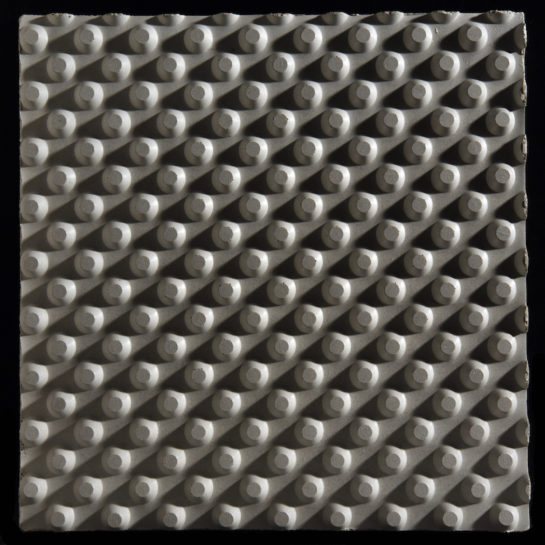 Die Reliefschalung wurde von den Studierenden selbst vorbereitet, in vormontierte Holzschalungen eingelegt und anschließend unter Anleitung der Mitarbeiter Winfried Schmidt und Daniel Horn im Labor mit selbstverdichtendem Beton (Feinkornmischung „Flowstone weiß“) ausgegossen und ausgeschalt. Die Außenschalung bestand dabei aus vorgefertigten Holz-Modulschalungen. Die Abmessungen jedes Sichtbetonreliefs betragen 30 x 30 cm und sind im positiv oder negativ als Struktur in Sichtbetonqualität ausgegossen. Die Höhe des Reliefs wurde auf 0,5 cm beschränkt.