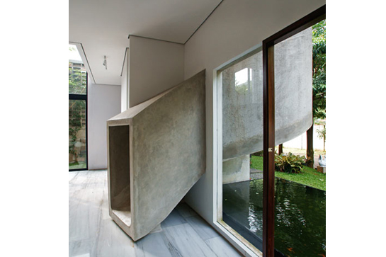 Nicht auf einem Playground, sondern im „Play House“ in Tangerang (Jakarta) steht diese einmalige Rutsche aus Beton. Sie verbindet in dem Einfamilienhaus das Kinderzimmer im ersten Stock mit der ebenerdigen Küche. Das indonesische Architekturbüro Aboday integrierte die Rutsche als Spirale an der Hausfassade. Ob die Kinder jetzt schneller kommen, wenn es heißt: „Essen ist fertig“? Foto: Happy Lim
