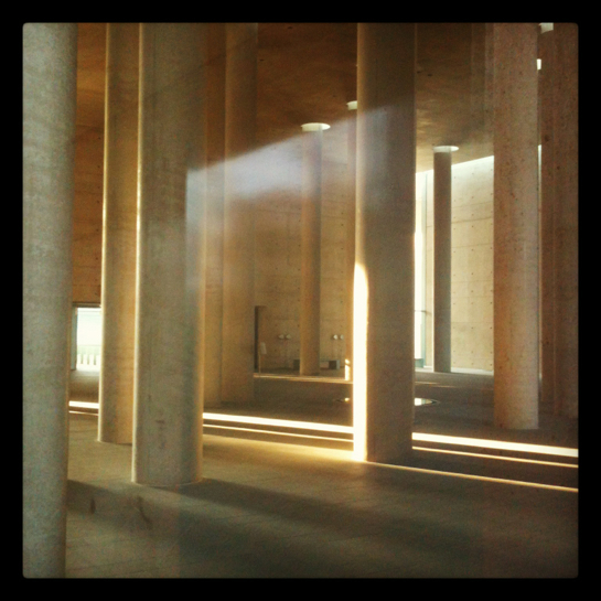 Ein Ort der immer durch eine besondere Stimmung geprägt ist – das Krematorium in Berlin Treptow. Die Architekten Axel Schultes und Charlotte Frank haben sich für diesen sakralen Bau für einen Quader aus Sichtbeton entschieden. Jetzt im Winter steht die Sonne kurz vor dem Untergang förmlich im Raum. Eine Stimmung voll Sinnlichkeit und Ruhe. Das ist ‚Mein Beton‘.